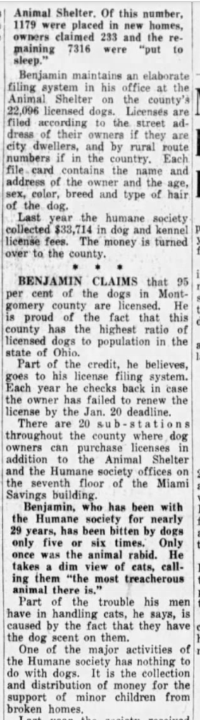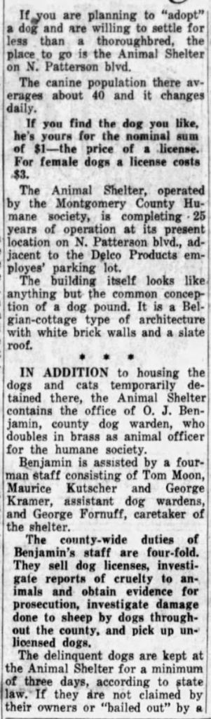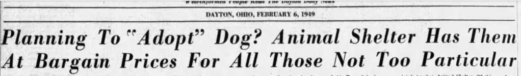 Hello, friends. This week, I’m bringing you a February 6, 1949 article from the Dayton Daily News. I have been on the continual hunt to find additional pieces from between 1930 and 1970 that give a clear view of shelter operations and euthanasia.